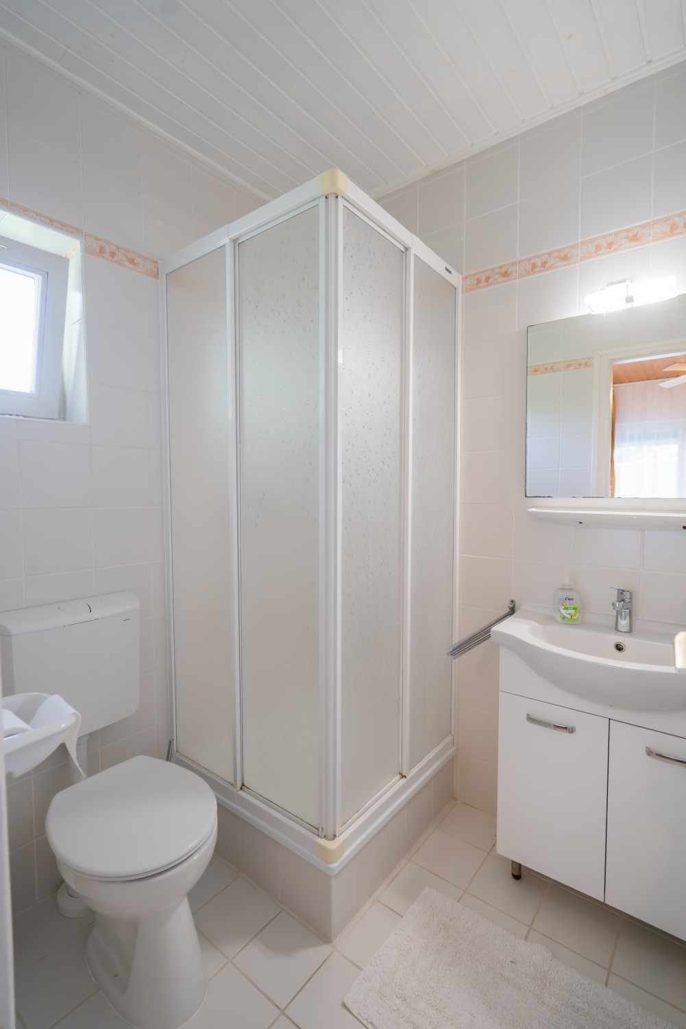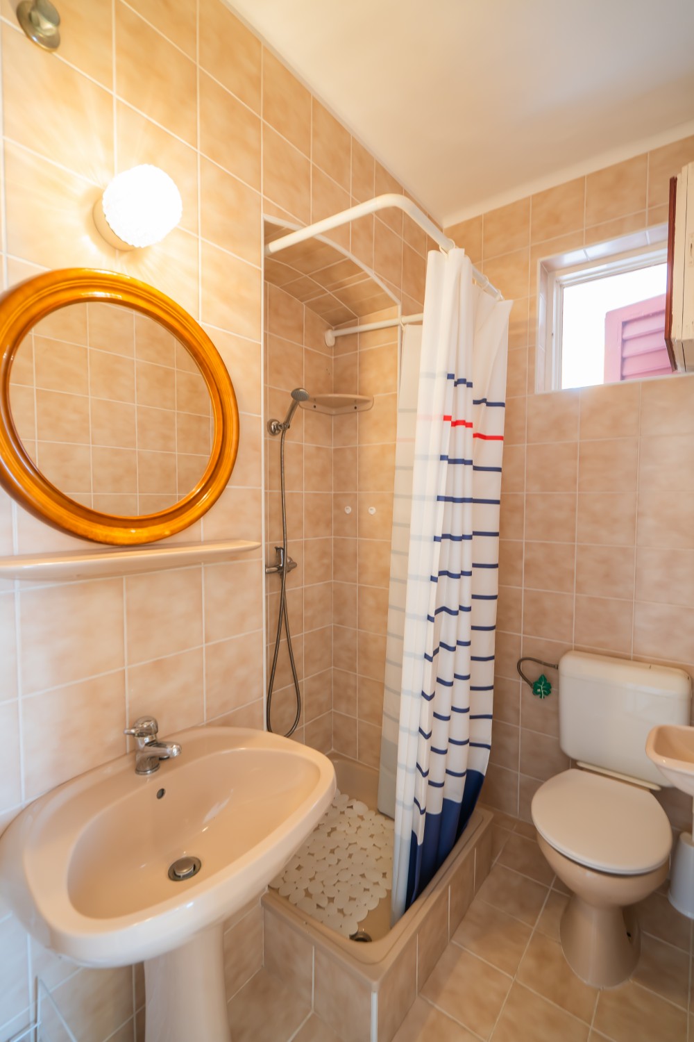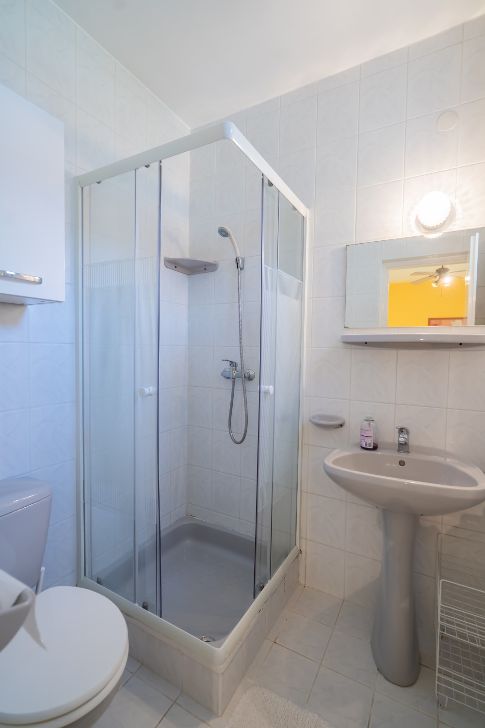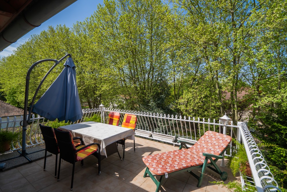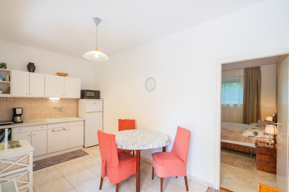 B típusú klímás apartman (4 fő) (40-60. képek): 2 szobával az első emeleten: 2 hálószoba mindkettő franciaággyal és mindkettő saját fürdőszoba/WC-vel, saját TV-vel, felszerelt konyha (kávéfőző, toast sütő, mikró, vízforraló stb.), mindkét szoba önálló terasszal. Mennyezetventillátorok mindkét szobában.