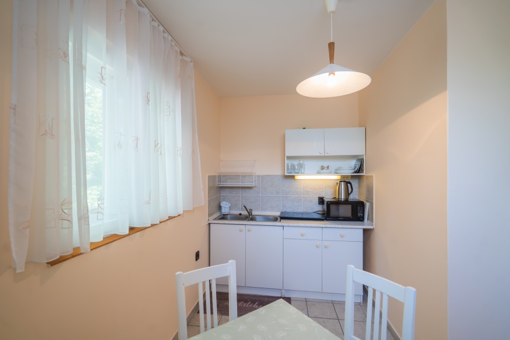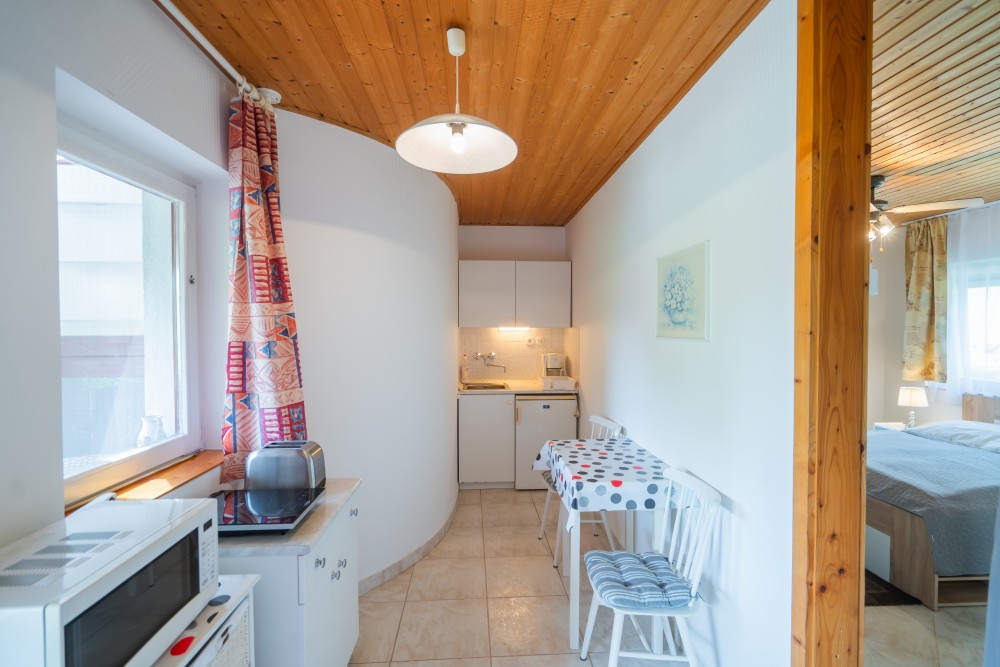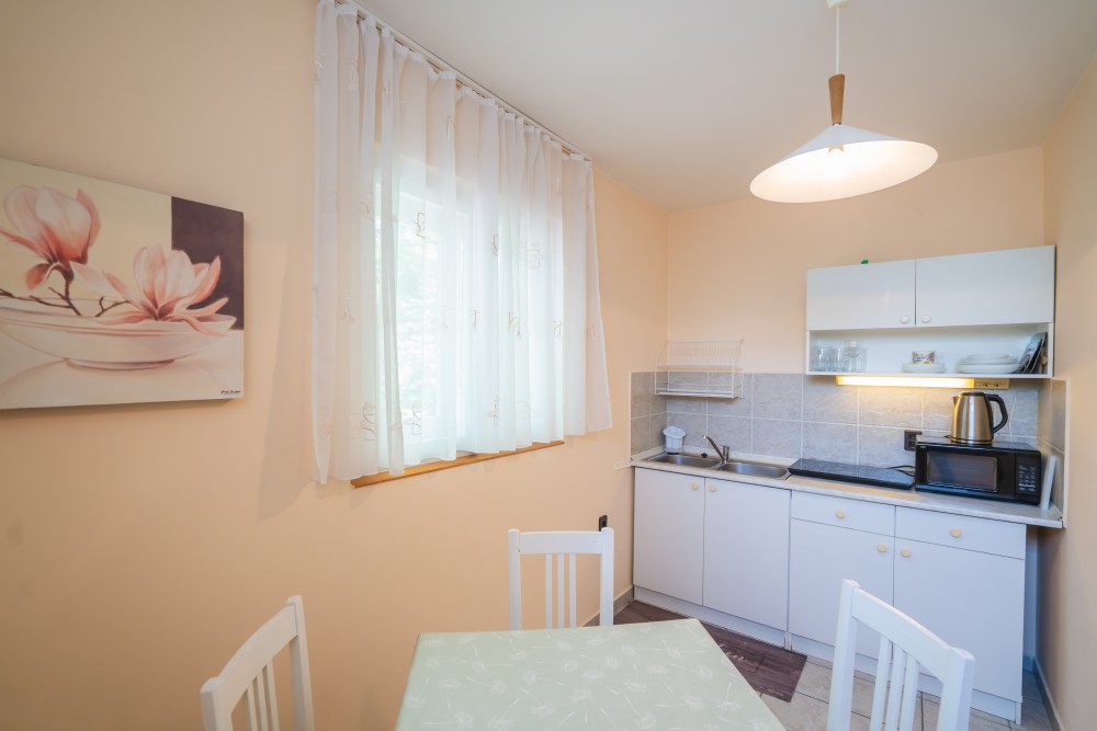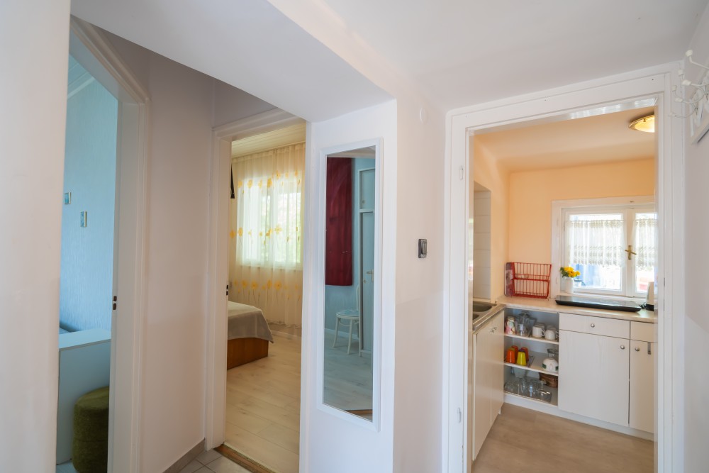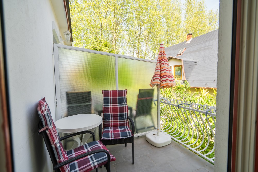A típusú klímás apartman (2 fő vagy 2+1 fő) (2-39. képek): hálószoba franciaággyal (egyes ilyen apartmanokban kinyitható pótágy), fürdőszoba/WC, LCD TV, felszerelt étkezőkonyha (kávéfőző, toast sütő, mikró, vízforraló stb.), balkon.