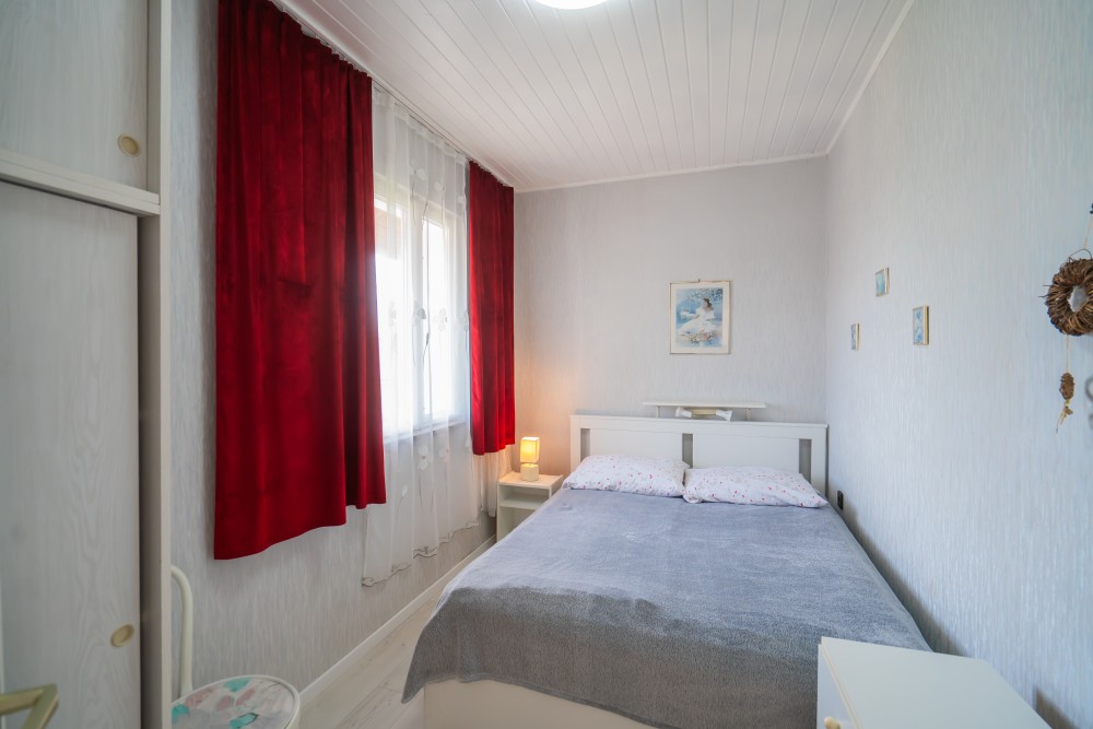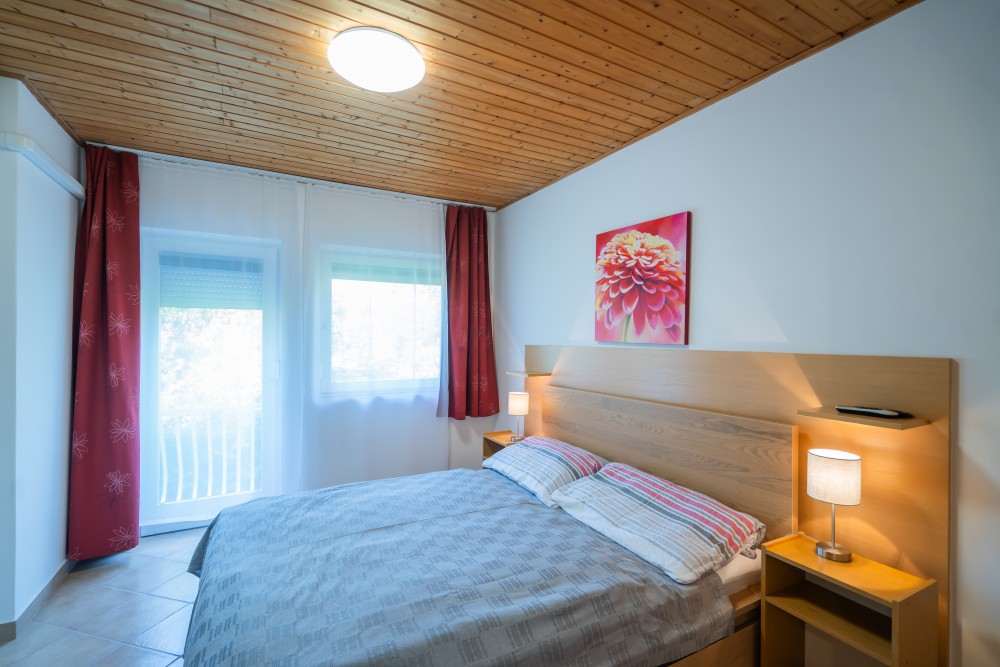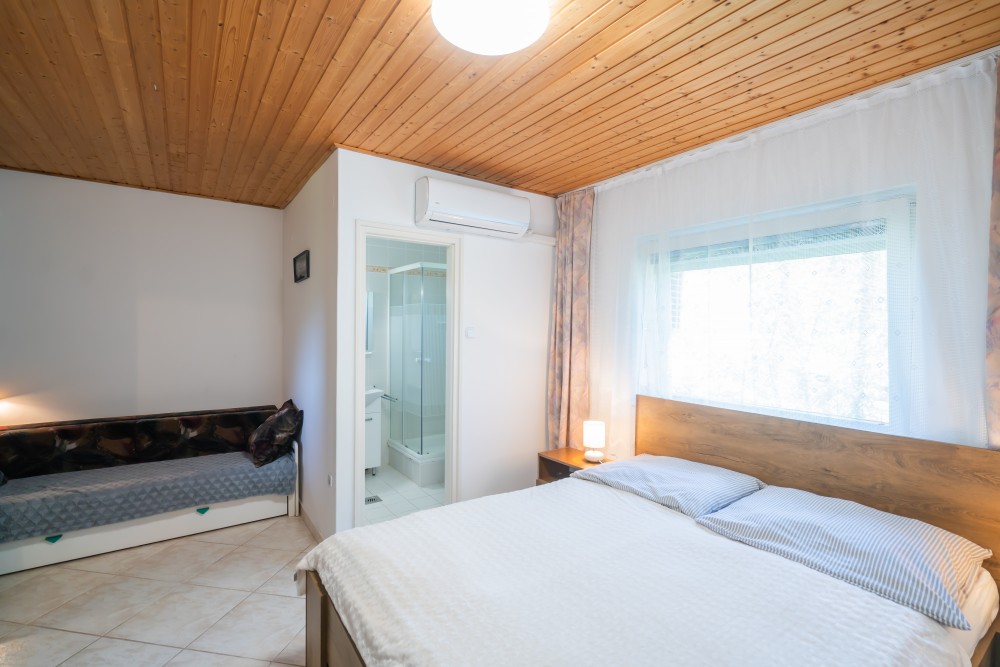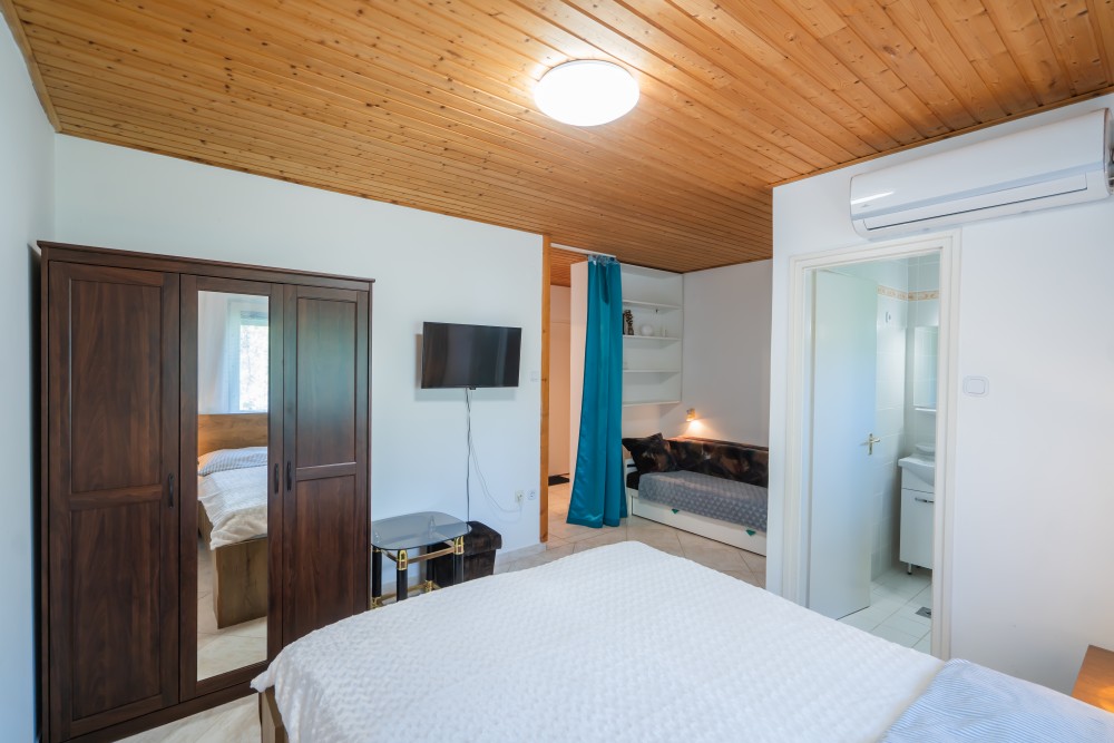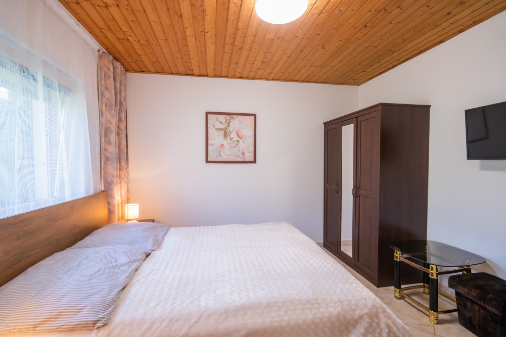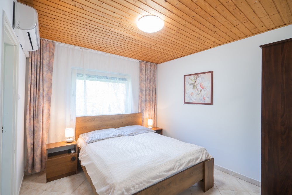 C típusú klímás apartman(4 fő) (61-76. képek): 3 szobás apartman a második emeleten nagy panorámaterasszal: 2 hálószoba, mindegyik saját franciaággyal és saját légkondícionálóval, fürdőszoba/WC, felszerelt konyha (kávéfőző, toast sütő, mikró, vízforraló stb.), nappali ülőgarnitúrával, étkezősarok, nagy LCD TV, nagy terasz kerti bútorokkal.