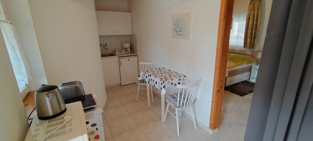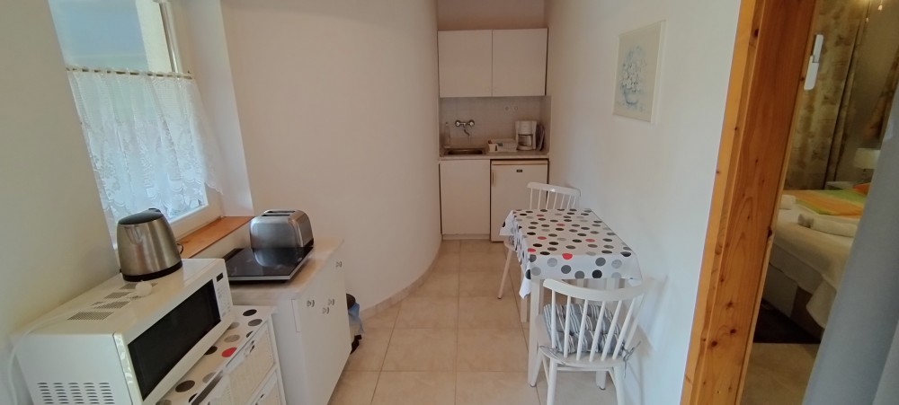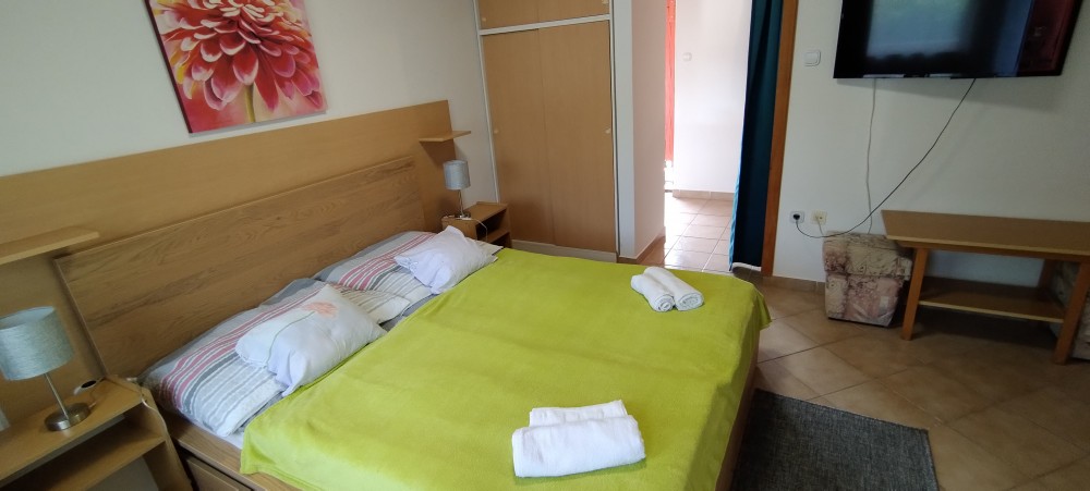A típusú klímás apartman (2 fő vagy 2+1 fő) (3-35. képek): hálószoba franciaággyal (egyes ilyen apartmanokban kinyitható pótágy), fürdőszoba/WC, LCD TV, felszerelt étkezőkonyha (kávéfőző, toast sütő, mikró, vízforraló stb.), balkon.