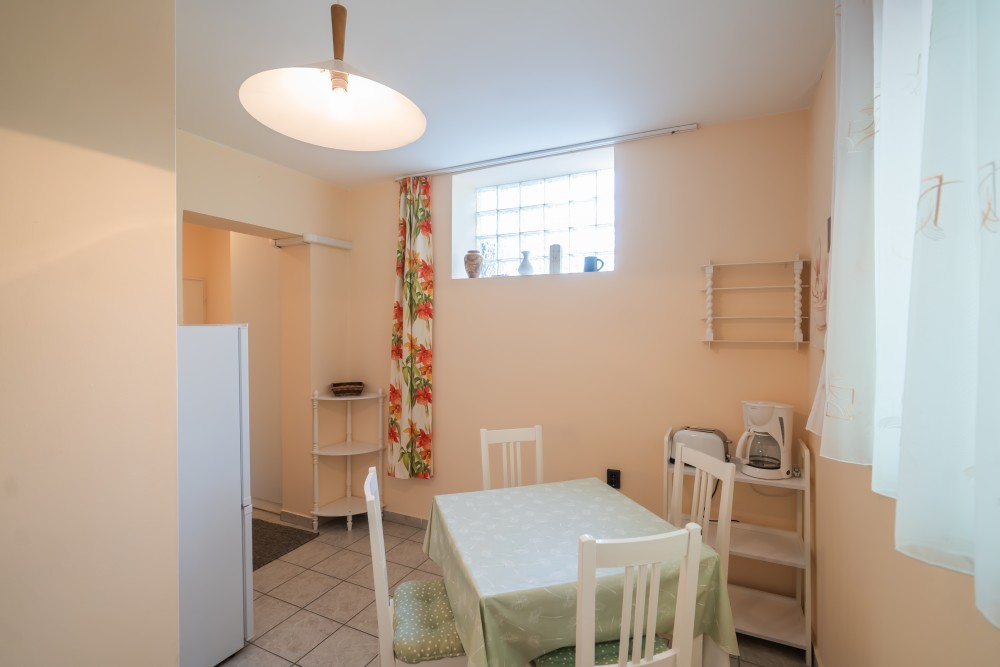 A tulajdonos a földszinten, szeparáltan lakik.